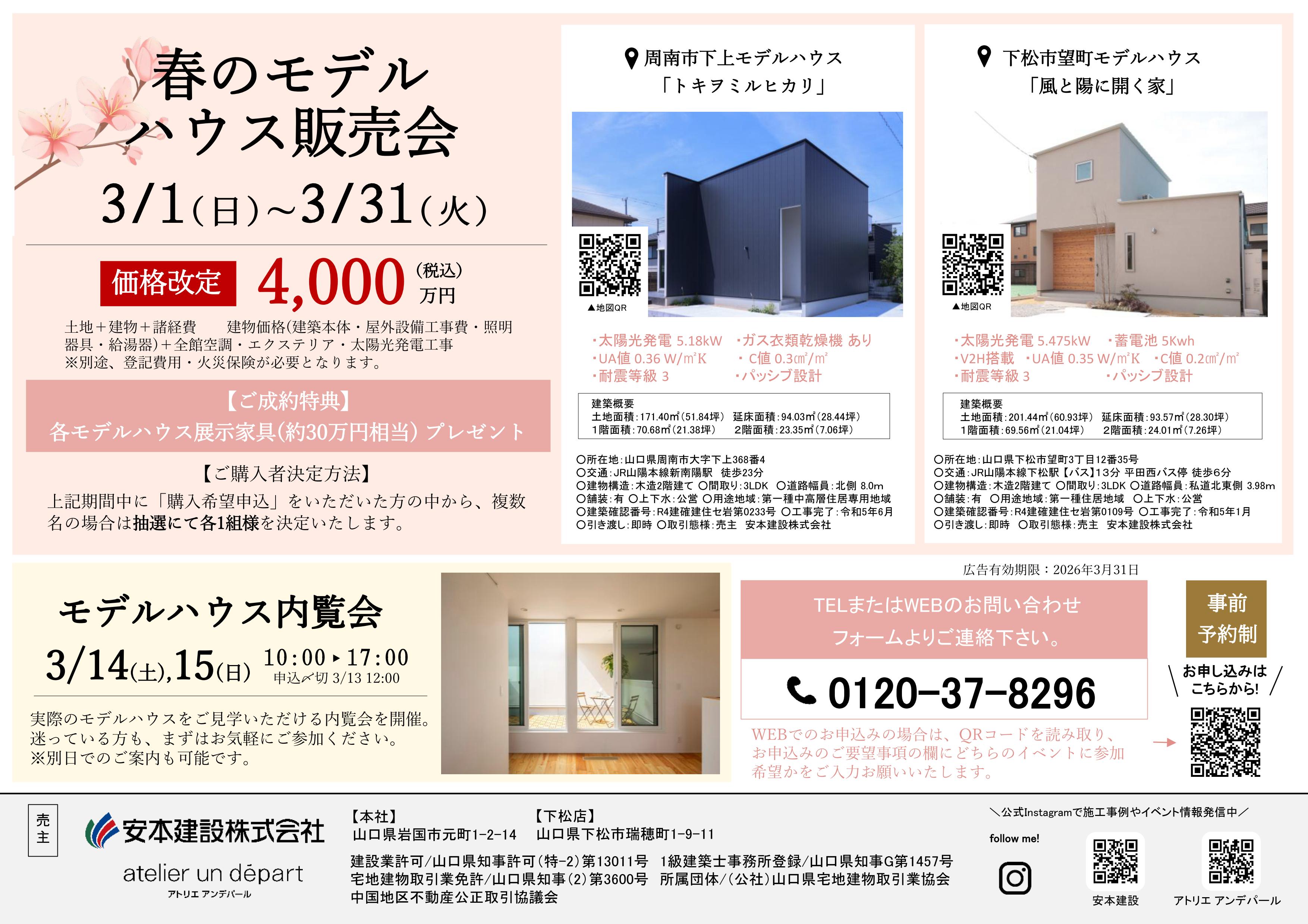 【販売会・内覧会】春のモデルハウス販売会・内覧会 山口県周南市,下松市
