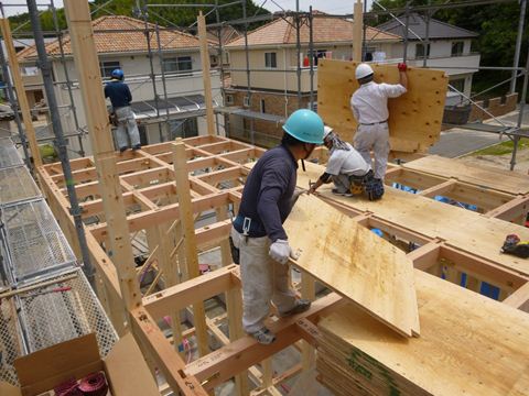 屋根合板張り