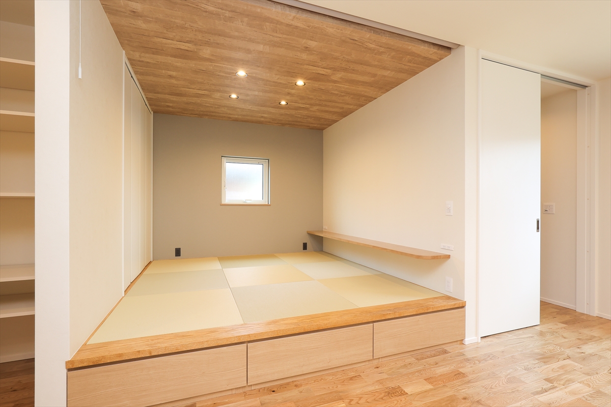 小上がり和室は、空間に立体感と変化をもたらし、多目的に使える人気のスペースとして、採用されています。