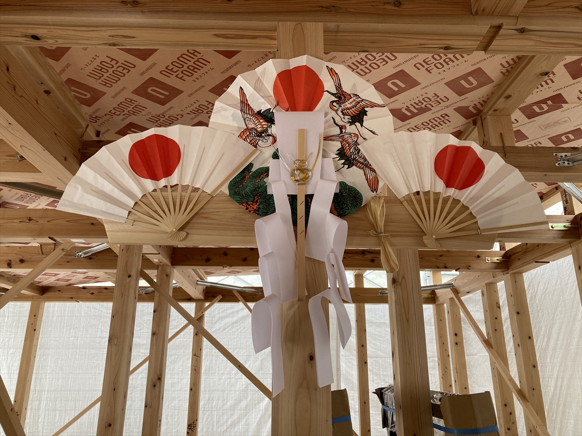 棟上げは、建物の骨組みが無事に完成したことを祝い、これまでの工事の安全を感謝するとともに、今後の工事の無事を祈願する意味合いが込められています。