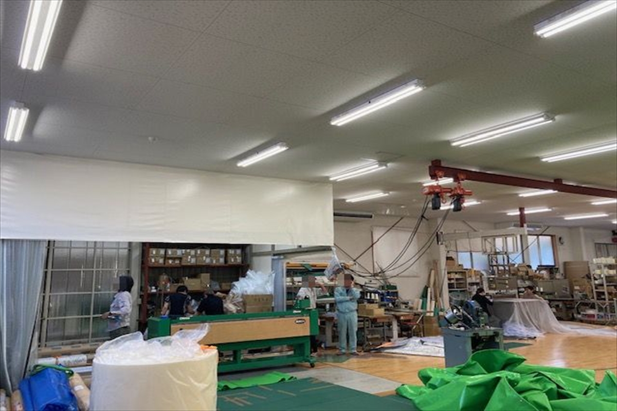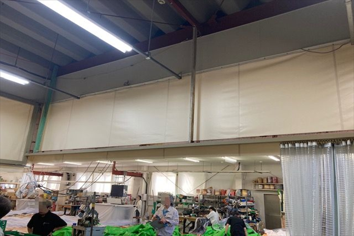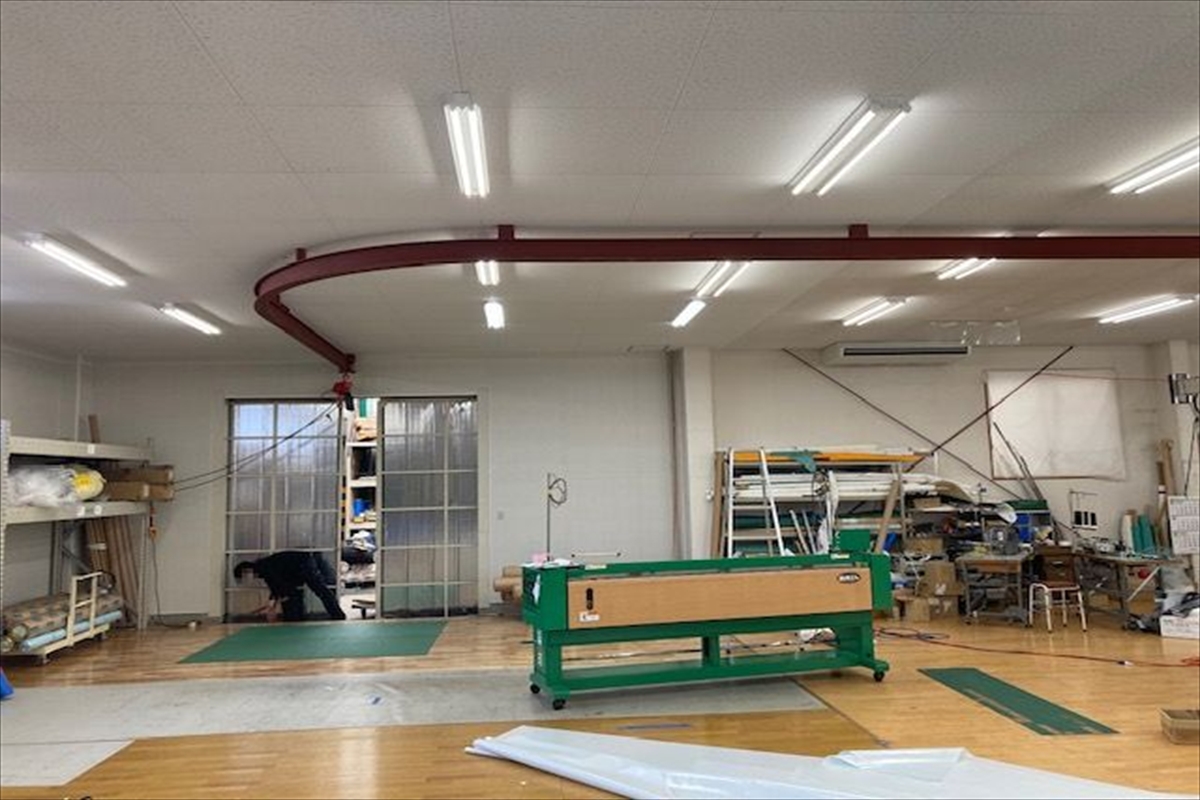 間仕切っていた垂れ壁を撤去し、新たに天井レールを延長しました。